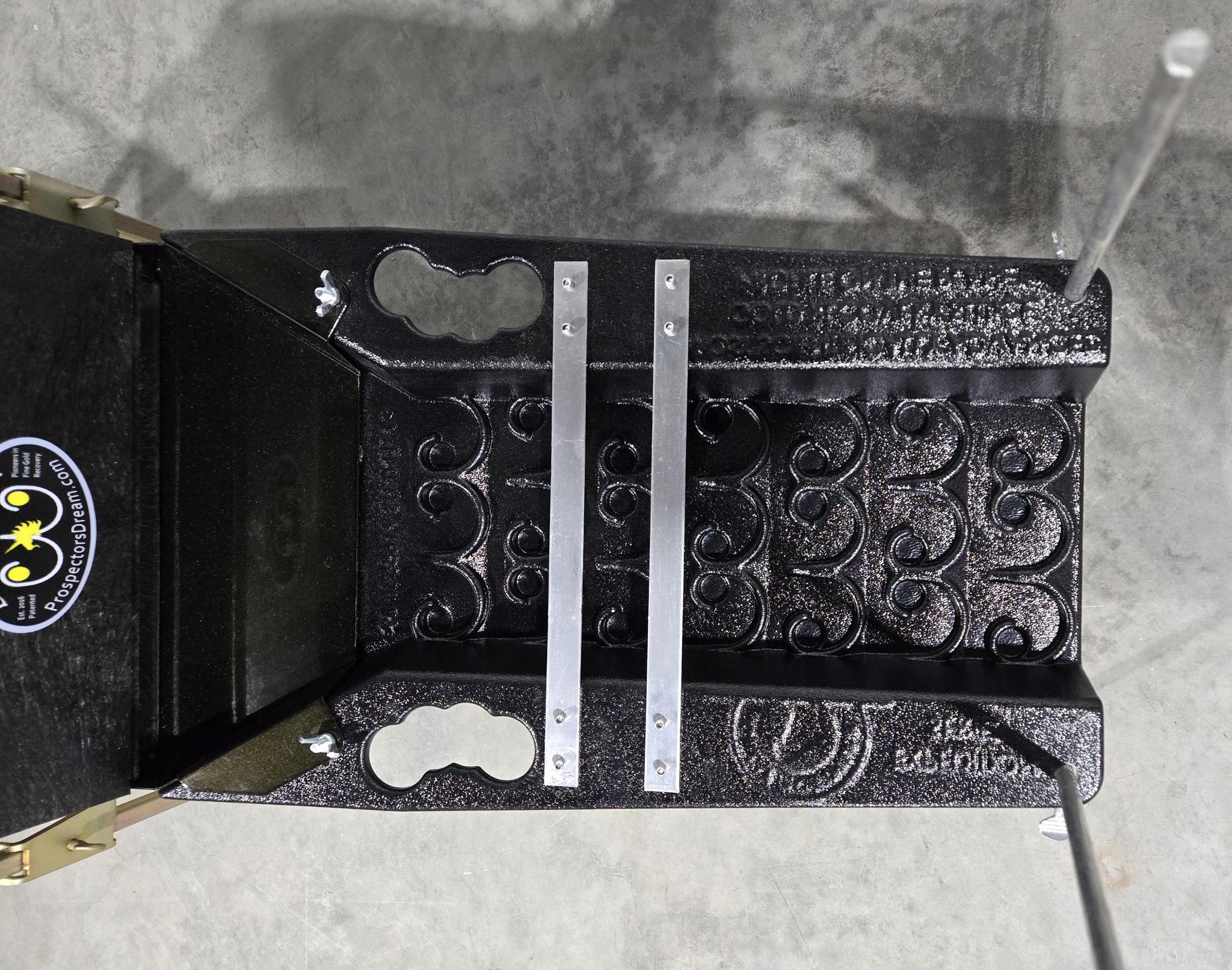 • 2x 3/8"x18 long aluminum legs w/ rubber boots to adjust your sluice angle.